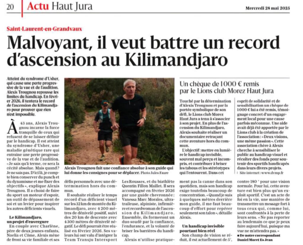 La Voix du Jura – Jeudi 17 octobre 2024 : https://actu.fr/bourgogne-franche-comte/saint-laurent-en-grandvaux_39487/malentendant-et-malvoyant-il-veut-gravir-le-kilimandjaro-avant-que-le-rideau-se-ferme_61719954.html